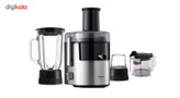 آبمیوهگیری پاناسونیک مدل «MJ-DJ31» از محصولات پرفروش و پرطرفدار این برند است. این دستگاه در کنار آبمیوه گیری میتواند با اضافه شدن دو قطعهی دیگر به مخلوط کن و آسیاب هم تبدیل شود. دستگاه آبمیوهگیری پاناسونیک مدل MJ-DJ31 از تیغهها و فیلتر استیل ضدزنگ بهرهمند است که بهخوبی فرآیند آبگیری را انجام میدهند. زاویهی تیغهها با طراحی ویژه پاناسونیک، راندمان دستگاه را به نحو چشمگیری بالا میبرد. همچنین، تیغه و فیلترهای این آبمیوه گیر قابلشست و شو هستند و به راحتی تمیز میشوند. پس از انجام فرآیند آبگیری، تفالههای میوهها به مخزن تفاله منتقل شده و آبمیوهی طبیعی و سالم در جهت مخالف به ظرف مخصوص آبمیوه منتقل میشود. طراحی این دستگاه به گونهای است که چکهای از دستگاه صورت نمیگیرد و محل استفاده را کثیف نمیکند. آبمیوه گیری پاناسونیک مدل MJ-DJ31 از دو سرعت مختلف بهره میبرد که توسط یک پیچ تنظیم قابل تغییر و انتخاب هستند. قرارگیری پارچ مخلوط کن با حجم بالا روی این دستگاه، قابلیتهای آن را افزایش داده و مواد غذایی را به خوبی خرد و مخلوط میکند. افزونهی دیگر این دستگاه آسیاب آن است که با قدرت تیغهها میتواند مواد بسیاری مانند زعفران، انواع مغز آجیل و مواردی از این قبیل را خرد کرده و به پودر تبدیل کند. استفاده از پایههای ضد لغزش مانع از تکان و جابهجایی دستگاه حین فعالیت میشود.