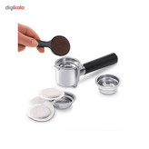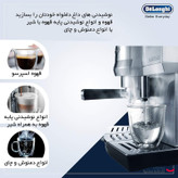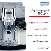 مشاهده محصولات مرتبطاسپرسوساز دلونگی مدل EC850M دستگاهی بسیار کاربردی و مدرن برای تهیه انواع قهوه با حفظ کیفیت است. این مدل با بهره گیری از توان طراحی شرکت معتبر دلونگی مشتریان این شرکت و خریداران این محصول را کاملا راضی نگه می دارد . این محصول مخزنی برای نگهداری دانه های قهوه ندارد و باید از قهوه آسیاب شده استفاده کرد. این مدل می تواند، اسپرسو و کاپوچینو آماده کند. تمام این امکانات از طریق پنل دسترسی دستگاه در اختیار مصرف کننده قرار می گیرد. مخزن آب در عقب دستگاه و مخزن شیر در جلوی دستگاه قرار دارد. سیستم ترموبلاک در این دستگاه در نظر گرفته شده است. فشار بخار 15 بار در این مدل باعث می شود تا قهوه به خوبی تهیه شود و کیفیت مقبولی داشته باشد. بدنه استیل اسپرسوساز دلونگی مدل EC850M علاوه بر استحکام زیبایی بخش آشپزخانه هم هست. طراحی دستگاه طوری است که محلی برای نگهداری فنجان ها هم در نظر گرفته شده است.مصرف انرژی این مدل بسیار پایین بوده و در رده انرژی A قرار می گیرد. دلونگی از برترین تولیدکنندگان دستگاه های اسپرسو و قهوه ساز دنیا است و اولین نام در این بازار است که به ذهن مشتریان می رسد.